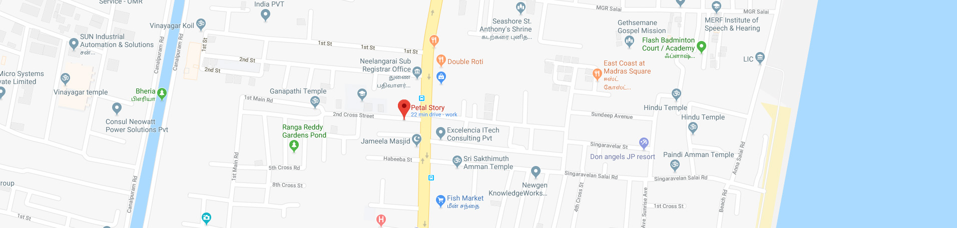 Petal Story is a boutique florist co-owned and run by Ambili Krishnan & Meera Paul Rao on the buzzing East Coast Road, at Neelankarai.